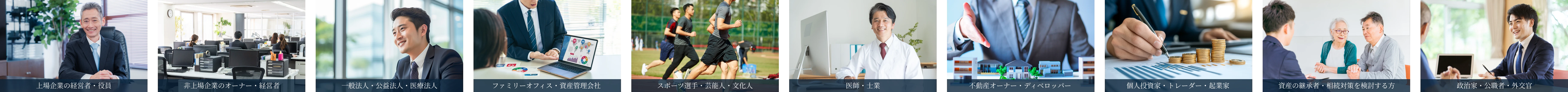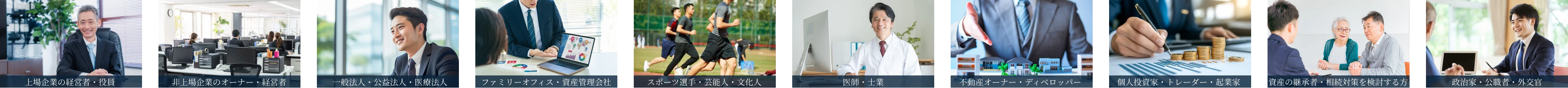私たちの主なお客様は、超富裕層(保有資産数十億円以上)や富裕層(保有資産1〜5億円以上)の方々で、多様な職業・背景をお持ちです。